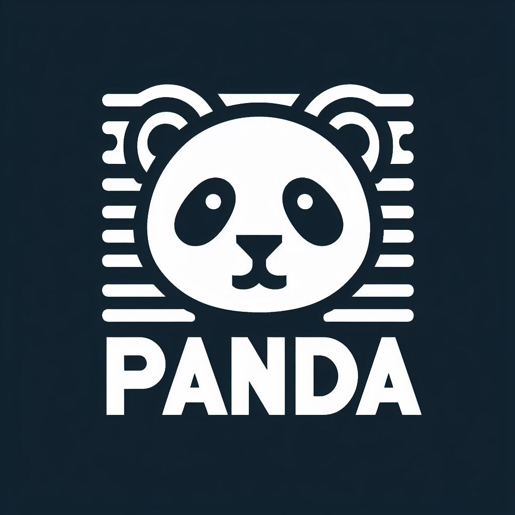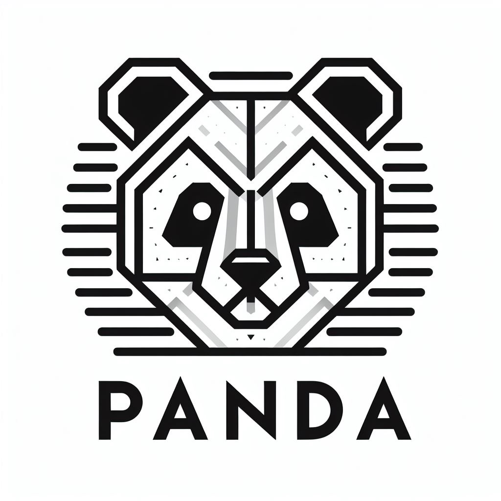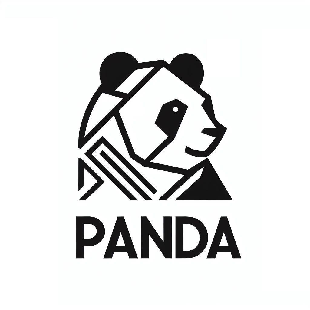 LOGO由两部分组成:上方是一个简洁而现代的熊猫图形,下方是“PANDA”字样。图形部分以现代直线勾勒出一个熊猫